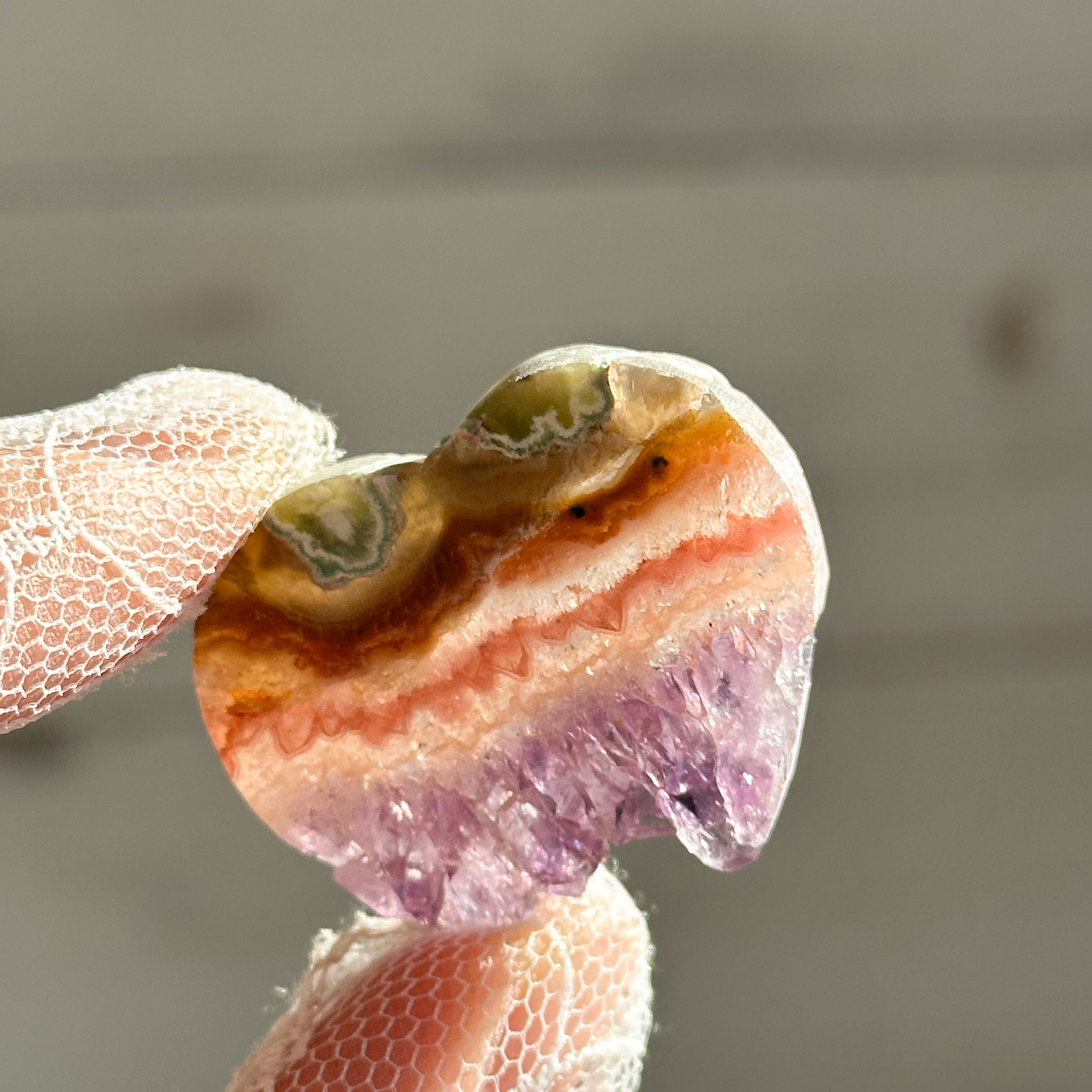 このハートの石は、アゲートとアメジストの美しい組み合わせが特徴で、自然の力を感じさせる優雅な色合いがあなたの心を穏やかにすることでしょう⁺‧₊˚