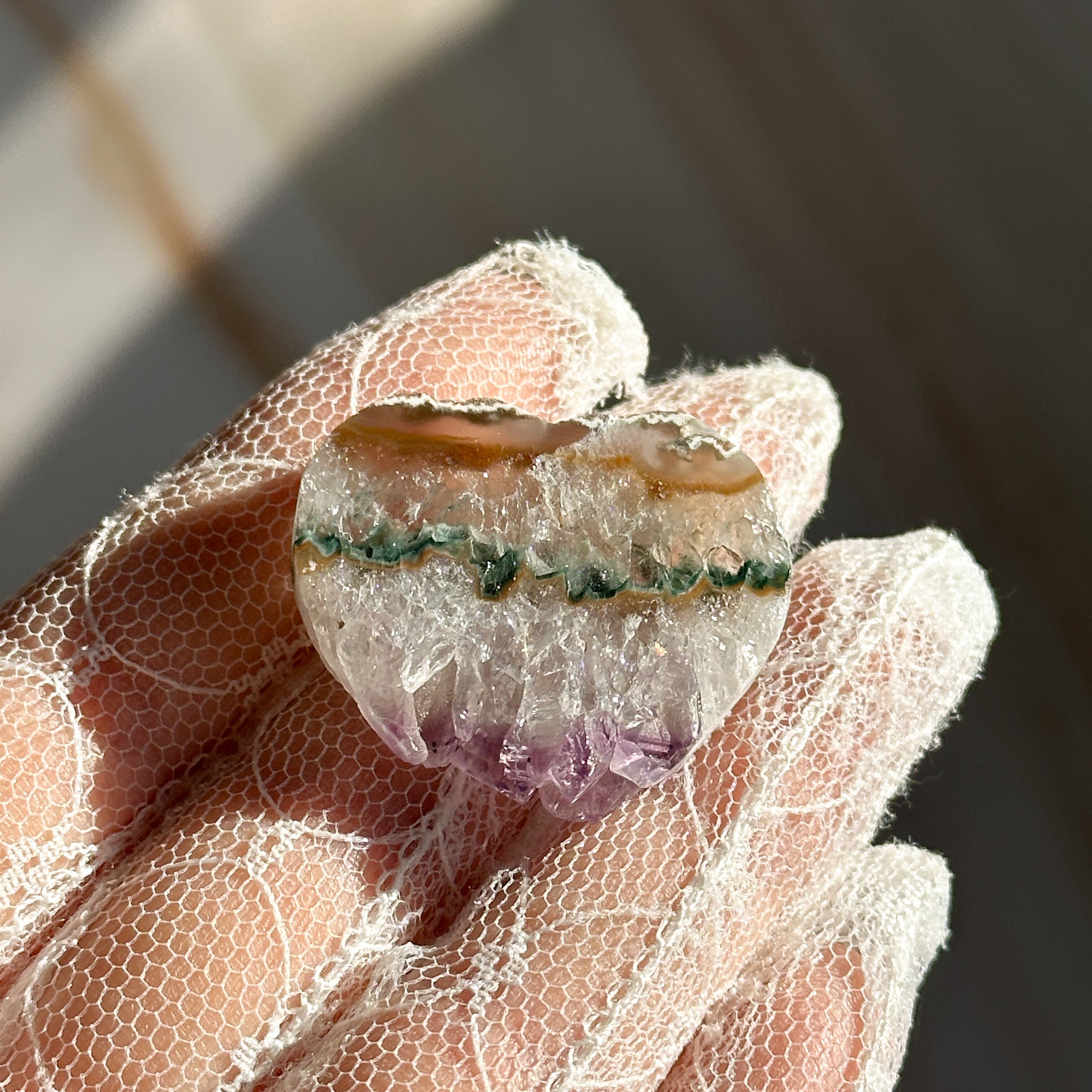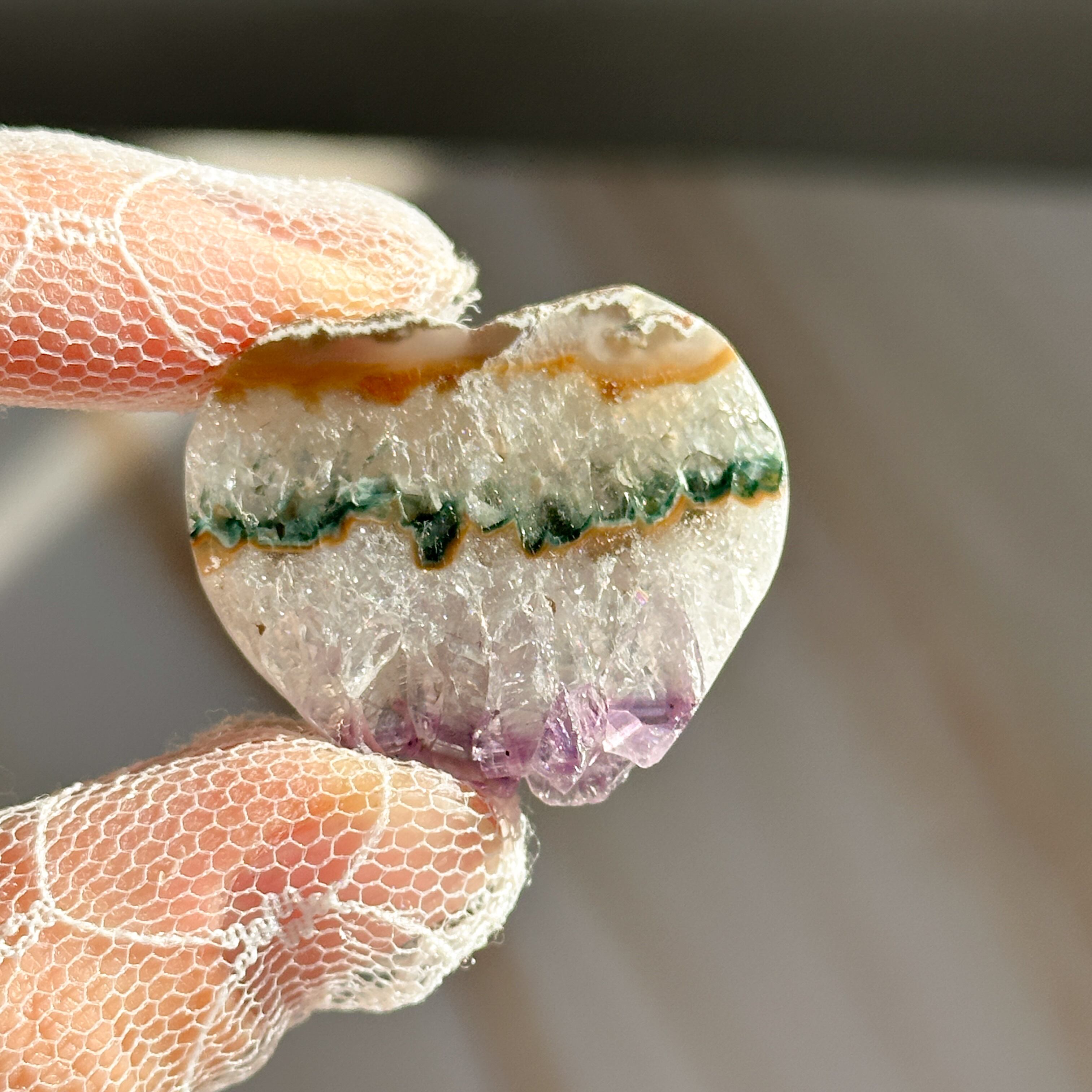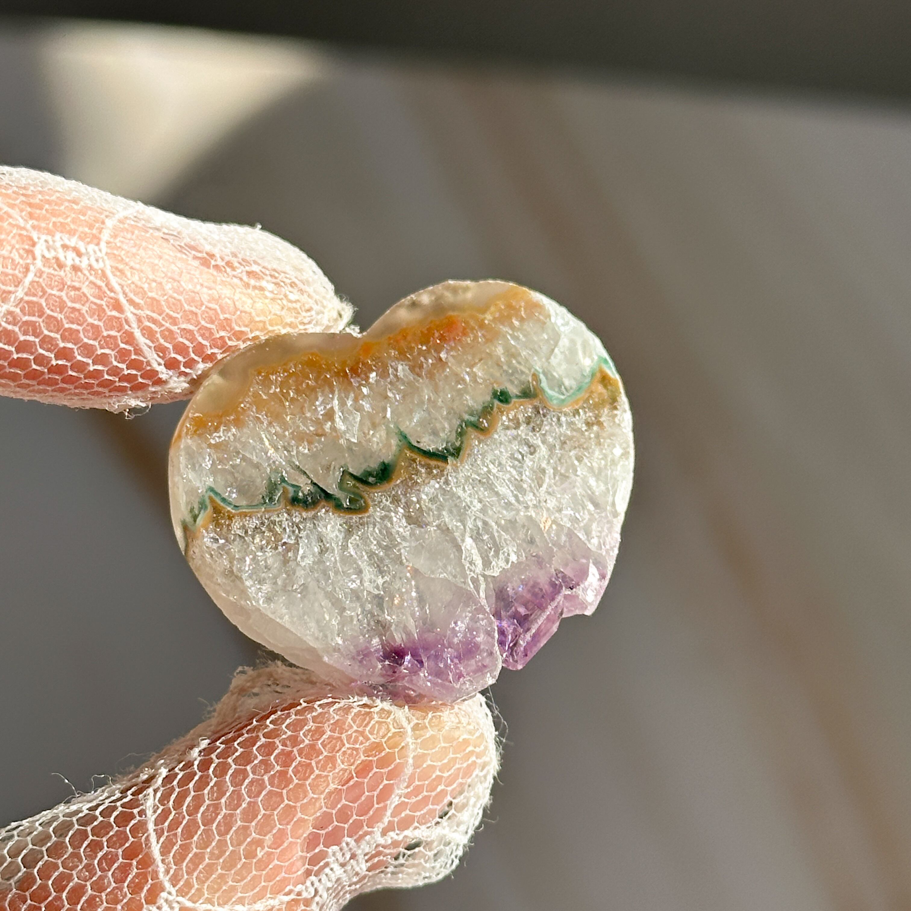 このハートの石は、アゲートとアメジストの美しい組み合わせが特徴で、自然の力を感じさせる優雅な色合いがあなたの心を穏やかにすることでしょう⁺‧₊˚
