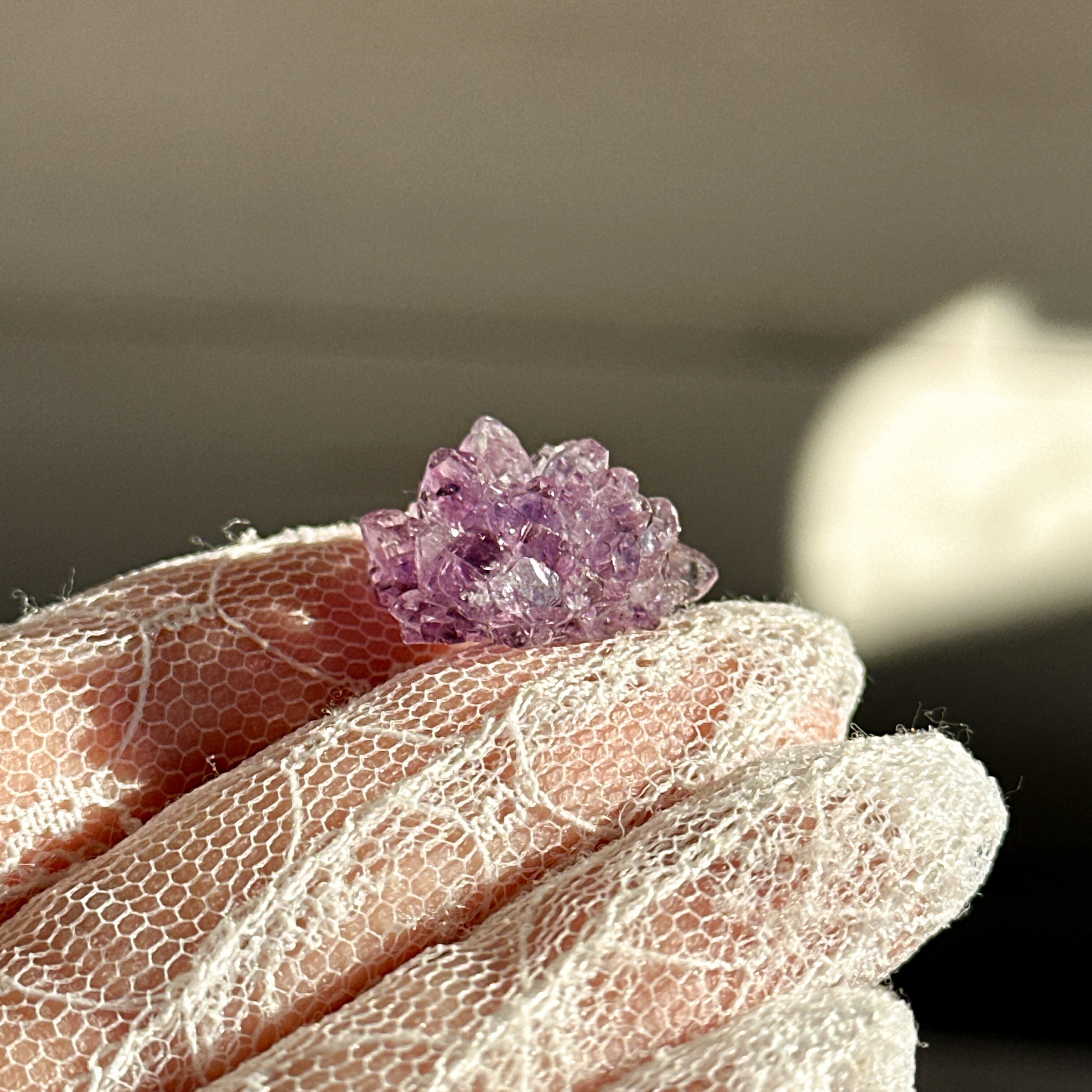 フラワーアメジストは、直感や精神的な成長を促進すると言われています。そのエネルギーは、心を穏やかにし、内なる真実に気づく助けとなるでしょう⁀✮₊⋆.˚⟡