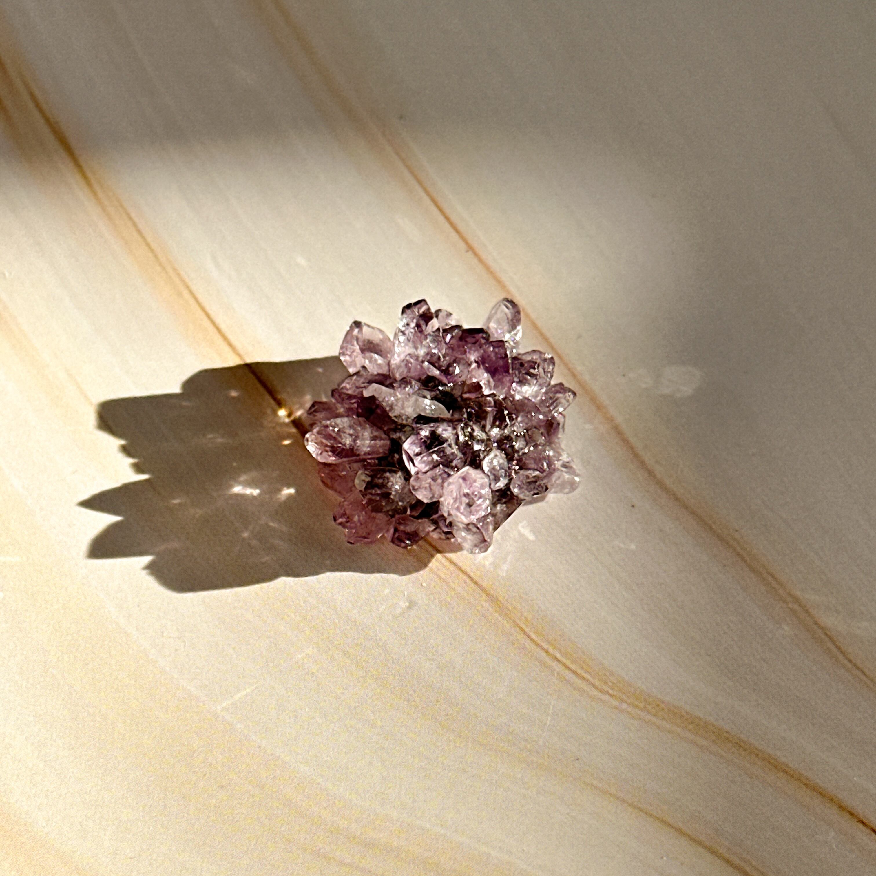 フラワーアメジストは、直感や精神的な成長を促進すると言われています。そのエネルギーは、心を穏やかにし、内なる真実に気づく助けとなるでしょう⁀✮₊⋆.˚⟡