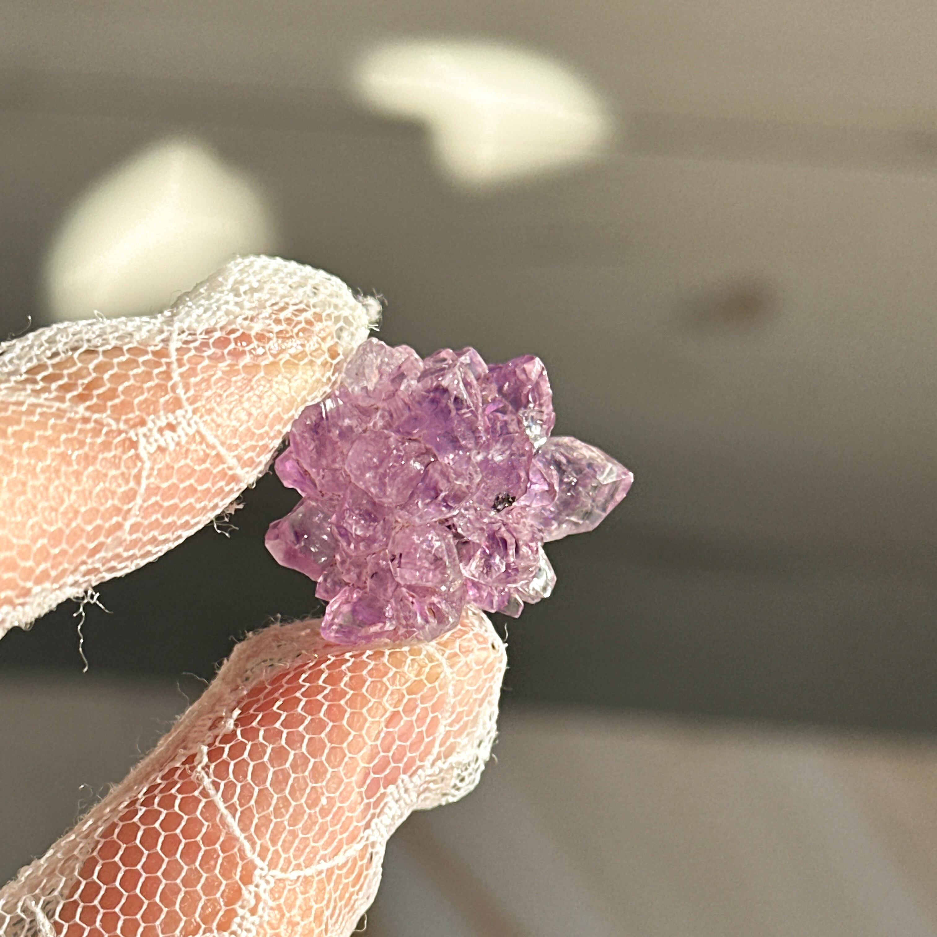 フラワーアメジストは、直感や精神的な成長を促進すると言われています。そのエネルギーは、心を穏やかにし、内なる真実に気づく助けとなるでしょう⁀✮₊⋆.˚⟡