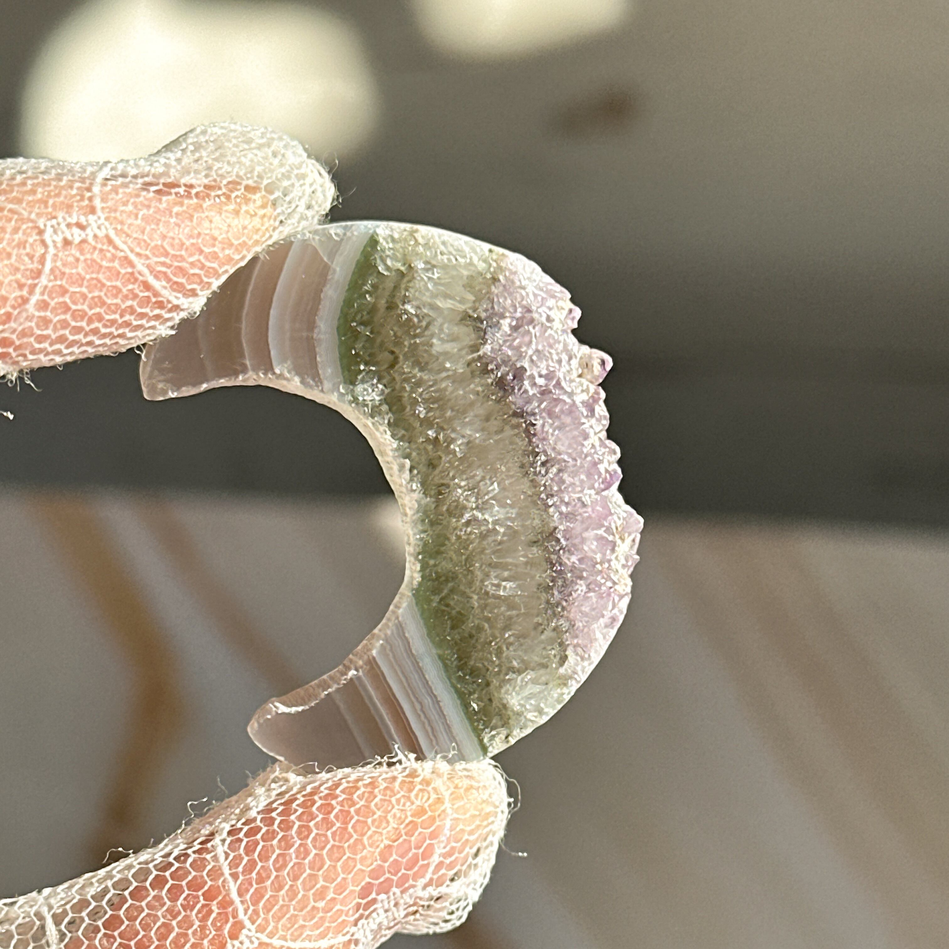 この月のアゲートとアメジストの特別なコラボレーションは、独自の模様と美しい紫色が印象的な一品です。優雅なその姿は、あなたの空間に洗練された雰囲気を与えることでしょう⁺‧₊˚